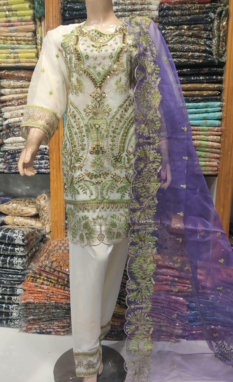 Pure, luminous white organza crafted for celebrations — ethereal and delicate, with subtle detailing that reads luxe and refined. Ideal for weddings or formal gatherings.